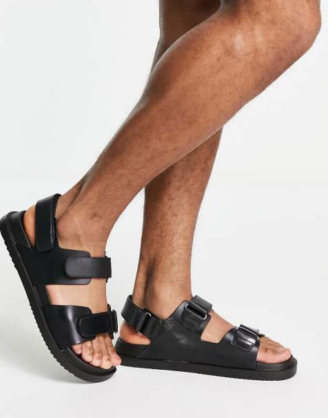 Veil Asymmetric Leather Sandal Black Dress Shoes Men Leather Sandals Leather